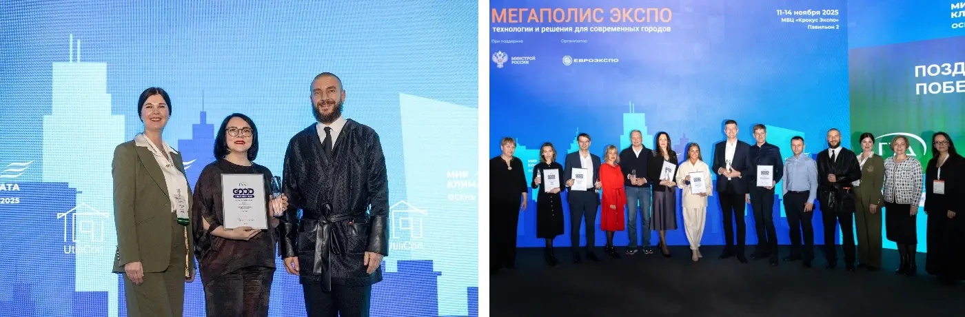 Отдельным ярким событием стала торжественная церемония награждения победителей конкурса инновационных проектов в сфере недвижимости GOOD INNOVATIONS. Организатор конкурса — НП «Российская гильдия управляющих и девелоперов».